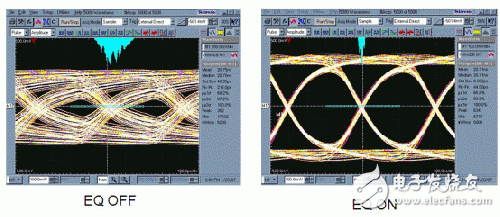 圖3 是均衡器的使用效果圖,可以看出高速SDI 信號經(jīng)過一段電纜或者PCB 走線后眼圖和抖動性能被均衡器顯著改善。