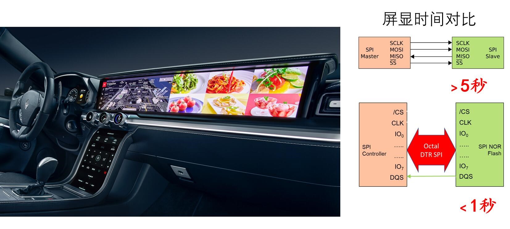 這是兆易創(chuàng)新的產(chǎn)品GD25LX系列SPI NOR閃存的典型應(yīng)用場景,如上圖所示——“我們剛剛發(fā)布很好地遵守ISO26262標(biāo)準(zhǔn)的產(chǎn)品”。這是第一顆國產(chǎn)的高速8口SPI NOR Flash,在體現(xiàn)的高速方面主要包括了400MB/s數(shù)據(jù)吞吐量,“高效XiP(片上執(zhí)行),8口指令輸入,8口DRT傳輸?shù)刂贰?shù)據(jù)”。