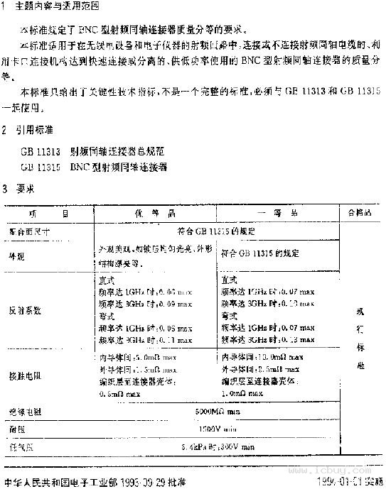 BNC型射頻同軸連接器質(zhì)量分等標(biāo)準(zhǔn)