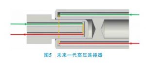 5)未來(lái)一代高壓連接器(圖5)會(huì)在第4代產(chǎn)品上考慮冷卻方式,如配合大功率充電帶液冷、風(fēng)冷的方式,來(lái)有效提高傳輸能量密度,降低質(zhì)量,提高產(chǎn)品綜合性能。