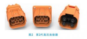 2)第2代高壓連接器(圖2),在第1代的基礎(chǔ)上增加了高壓互鎖功能,連接器的外殼也逐漸由金屬變?yōu)樗芰稀?/p>