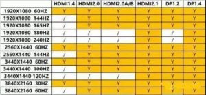 目前市面最多的DP1.2已經(jīng)高達(dá)21.6Gbit/s超越了HDMI2.0,支持1080P 240、2K 165、4K 75、5K 30。DP1.3支持2K 240、4K 120、8K 30。