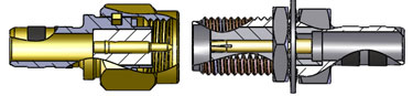 性別化連接器可以是共面的(圖3)或非共面的(圖4),并且通常在內(nèi)導(dǎo)體和外導(dǎo)體中都是性別匹配的,如類型N和SMA連接器。對于共面連接器,中心導(dǎo)體和外部導(dǎo)體匹配在同一平面內(nèi)(如SMA連接器)。對于非共面連接器,中心導(dǎo)體與外部導(dǎo)體不匹配(例如N型,BNC和TNC連接器)。同軸連接器可采用空氣或固體電介質(zhì)設(shè)計,聚四氟乙烯(PTFE),Delrin?或熱塑性塑料可用作常見的固體介電材料??諝庾鳛樽罴央娊橘|(zhì),然后是PTFE,然后是Delrin。具有固體電介質(zhì)的連接器可以齊平或具有重疊配置,75ΩBNC和50ΩSMA和SSMA連接器可以是齊平連接器配置的示例。