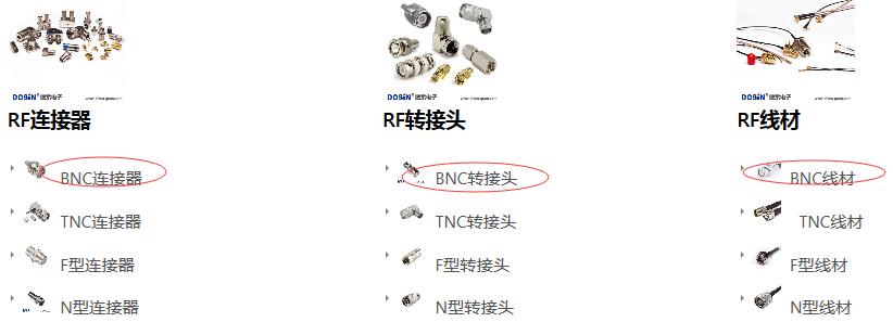 BNC轉(zhuǎn)接類:主要是把BNC母頭轉(zhuǎn)接為各種各樣的其它接頭。