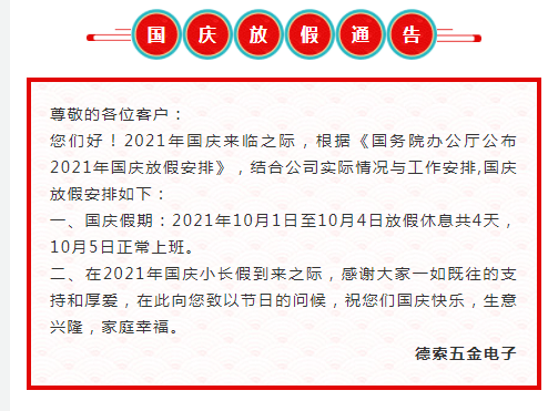 儲能插頭, 公司新聞迎國慶喜上加喜,儲能連接器新品問世 我們祖國的生日又到,1949年10月1日下午3時,北京30萬人在天安門廣場隆重舉行典禮,慶祝中華人民共和國中央人民政府成立, 從此開啟新世界大門。在這個舉國同慶的日子里,德索五金電子在此送您五千萬:千萬要快樂,千萬要健康,千萬要平安,千萬要發(fā)財,重要的一點,是千萬不要忘記我喲! 在這個普天同慶的日子,映著祖國母親的光輝,德索五金電子再創(chuàng)佳績,又迎來好消息! 多種規(guī)格的新能源儲能連接器震撼上市啦! 凡國慶期間客戶咨詢下單,統(tǒng)統(tǒng)9折! 一、產品特征 ①360°旋轉插頭 ②觸指技術分流原理③多種端接方式 ④有三種顏色可供選擇 ⑤快速的插拔設計 二、技術參數(shù) 十月的陽光,彌漫著喜慶,亦翻閱著我們的心情;愿思念不停歇,快樂不消退;更愿這份祝福如清風般溫潤你的心田,溫馨飄逸~ 歡度國慶|掃碼關注我們 2021年9月28日 http://m.ads0517.com/wp-content/uploads/2021/09/2.png 1155 1732 dosin http://m.ads0517.com/wp-content/uploads/2023/04/logo-new-006.png dosin2021-09-28 16:30:302021-11-12 11:22:35迎國慶喜上加喜,儲能連接器新品問世