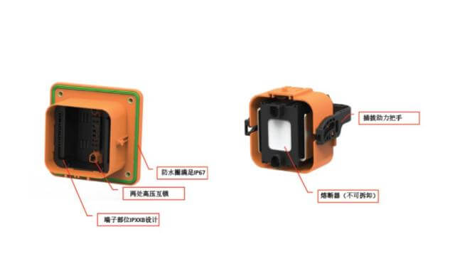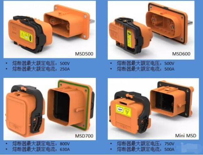 MSD連接器 雖然只是Pack的一個(gè)小部件,由于這個(gè)部件涉及到產(chǎn)品的安全,它的設(shè)計(jì)和選型格外重要,不容忽視。MSD工作的基本原理是將MSD安裝在主回路中,內(nèi)置高壓保險(xiǎn)絲,并設(shè)計(jì)有高壓互鎖功能。在外部發(fā)生短路時(shí),保險(xiǎn)絲熔斷切斷高壓回路;需要手動(dòng)斷開高壓時(shí),高壓互鎖會(huì)先斷開,然后再斷開高壓回路。因此,一般來說,保險(xiǎn)絲、高壓互鎖HVIL接口是MSD必備的,其中MSD700,Mini-MSD具有二次解鎖功能,此外還包括密封件、手動(dòng)斷開拉手、高壓警示標(biāo)識(shí),以及殼體與固定結(jié)構(gòu)等。