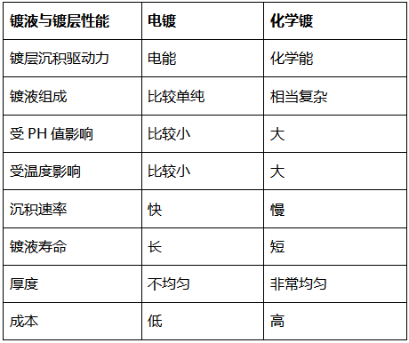 化學(xué)鍍與電鍍最大的不同,不需要外電流?;瘜W(xué)鍍鍍層厚度均勻,針孔率低。