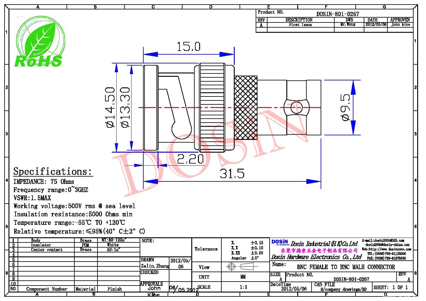 標(biāo)簽:?PCBNC, 射頻同軸連接器, 直式, 公頭, 同軸線纜, RG58,RG59, 壓接