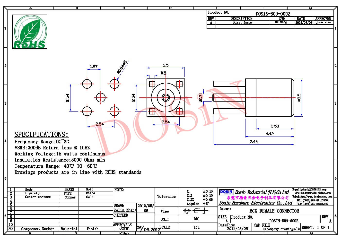 標(biāo)簽:?PCB板端,直式,母頭,mcx連接器,射頻同軸