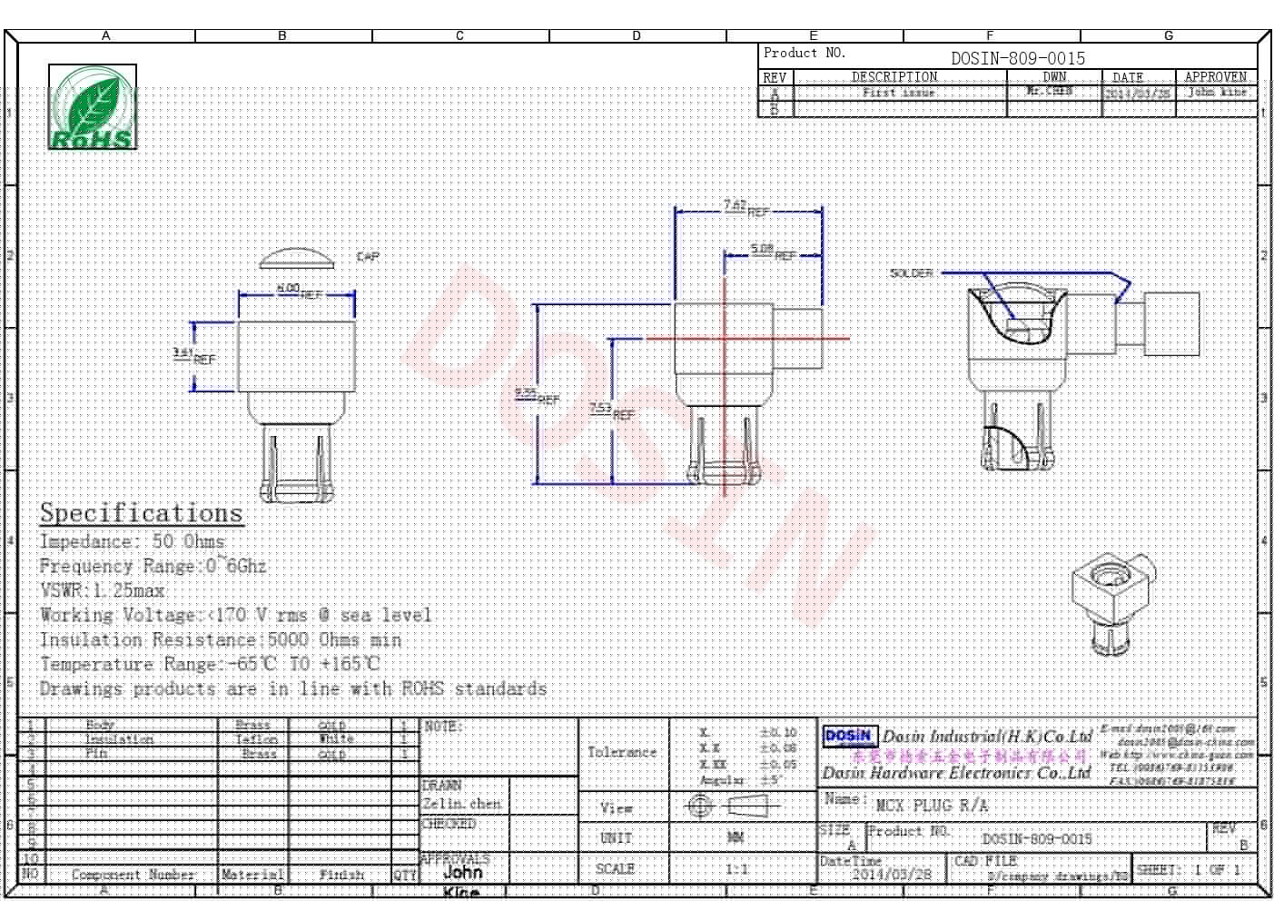 標簽:?同軸線纜,彎式,焊接,mcx連接器