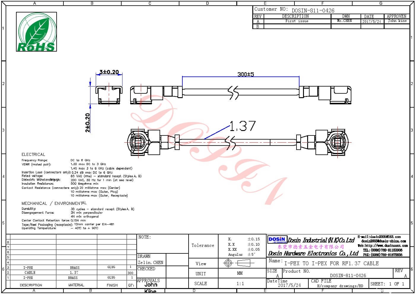 料號:?DOSIN-811-0026 標簽:?TNC線材,RF射頻同軸線材,N線材 產(chǎn)品特點: