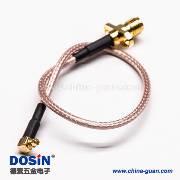 MMCX公轉(zhuǎn)SMA接頭母彎式90度2孔法蘭組裝線材壓接