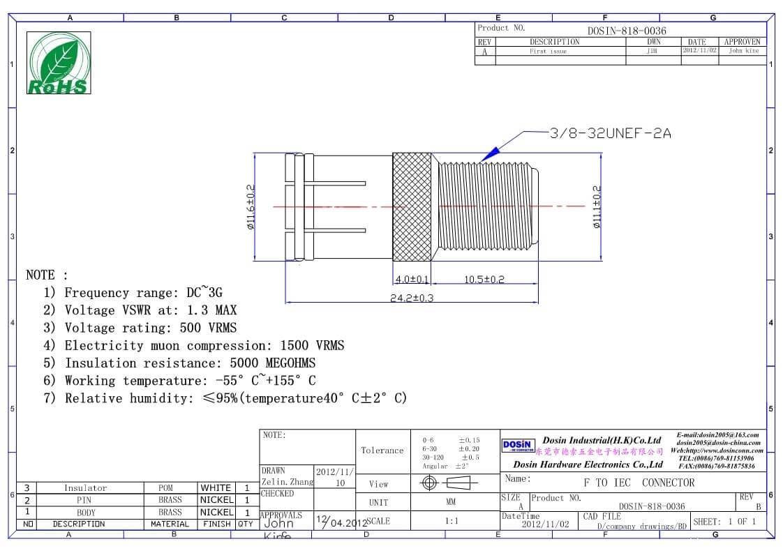 料號:?DOSIN-818-0036 標簽:?轉(zhuǎn)接頭,直式,F頭, IEC 產(chǎn)品特點: