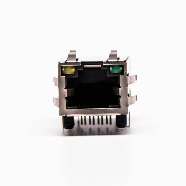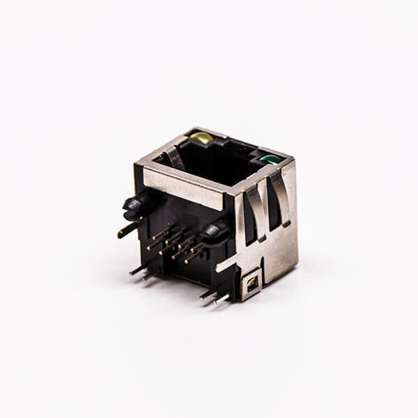 料號:DOSIN-819-0516 標簽:RJ45,母座,PCB板,單口,彎式,帶屏蔽,帶燈,銅殼