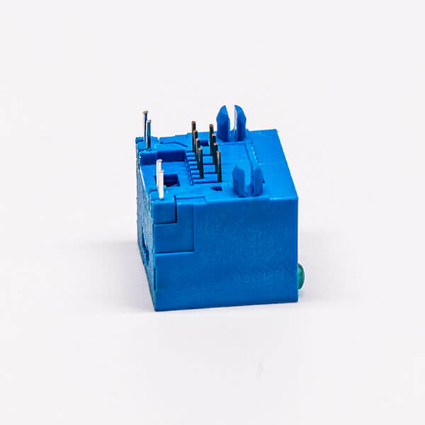 rj45網(wǎng)線接口母座彎式全塑藍(lán)色單口8p帶燈連接器