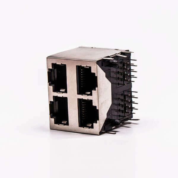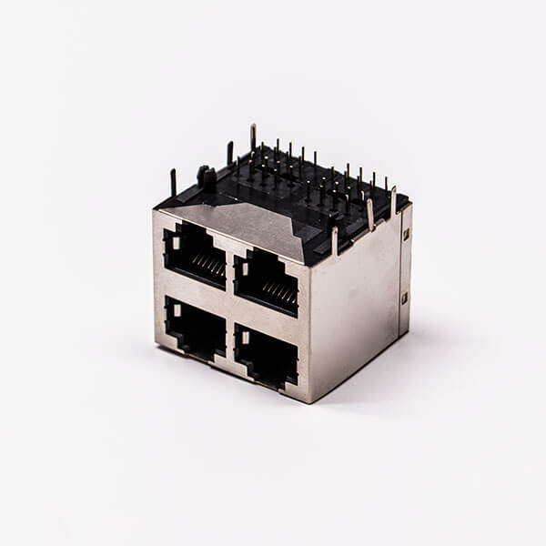 標(biāo)簽:RJ45,母座,PCB板,8P,2*2,四口,彎式,帶屏蔽,不帶燈,帶彈片,銅殼,不帶彈片