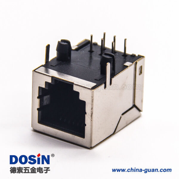 料號:DOSIN-819-0625 標簽:RJ45插座,8P8C,單端口,1*1,彎式90°,觸頭鍍金,插孔,PCB板安裝,帶屏蔽,不帶燈,不帶濾波