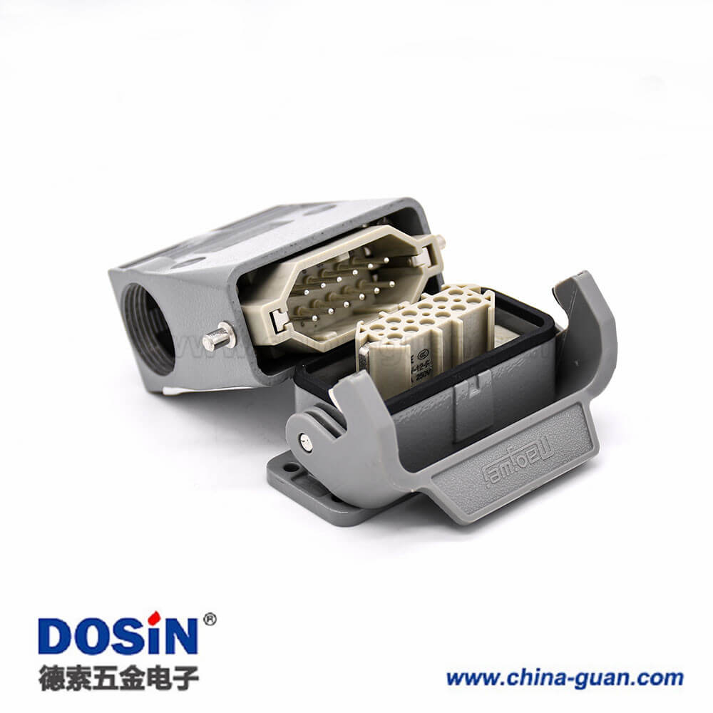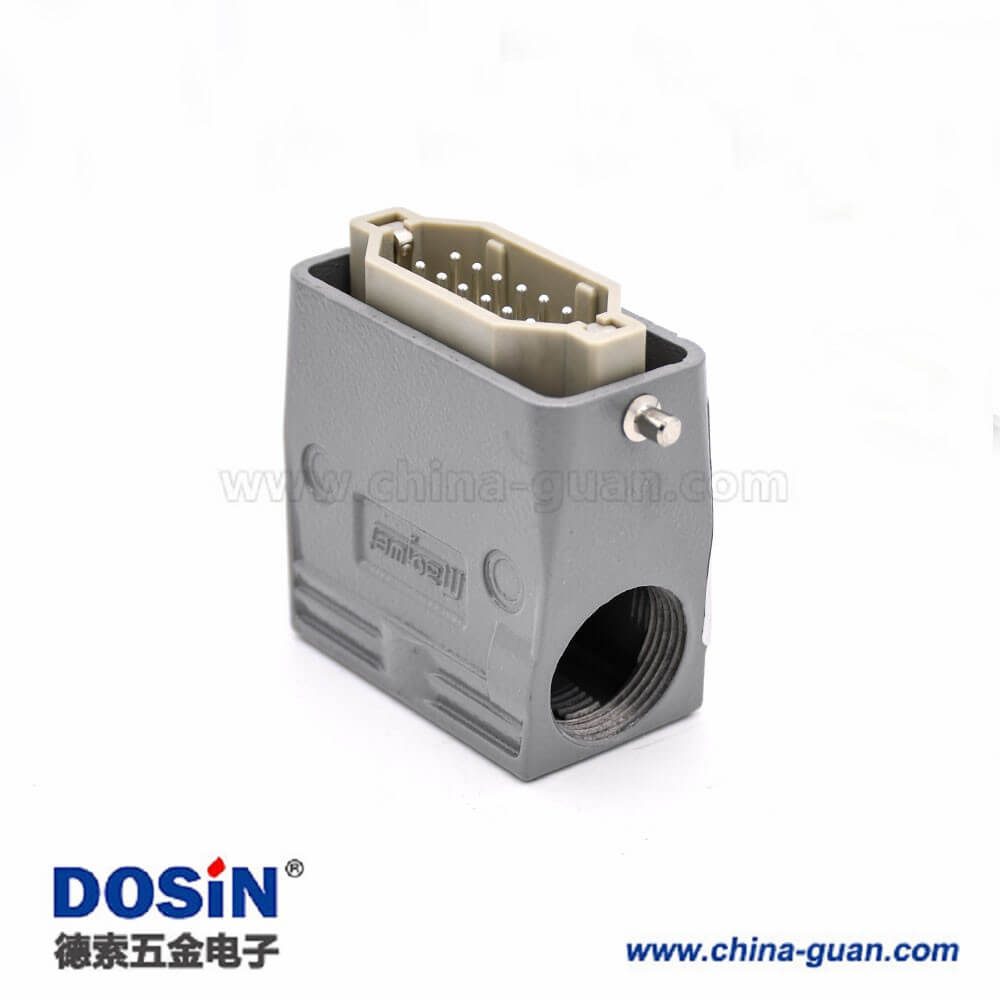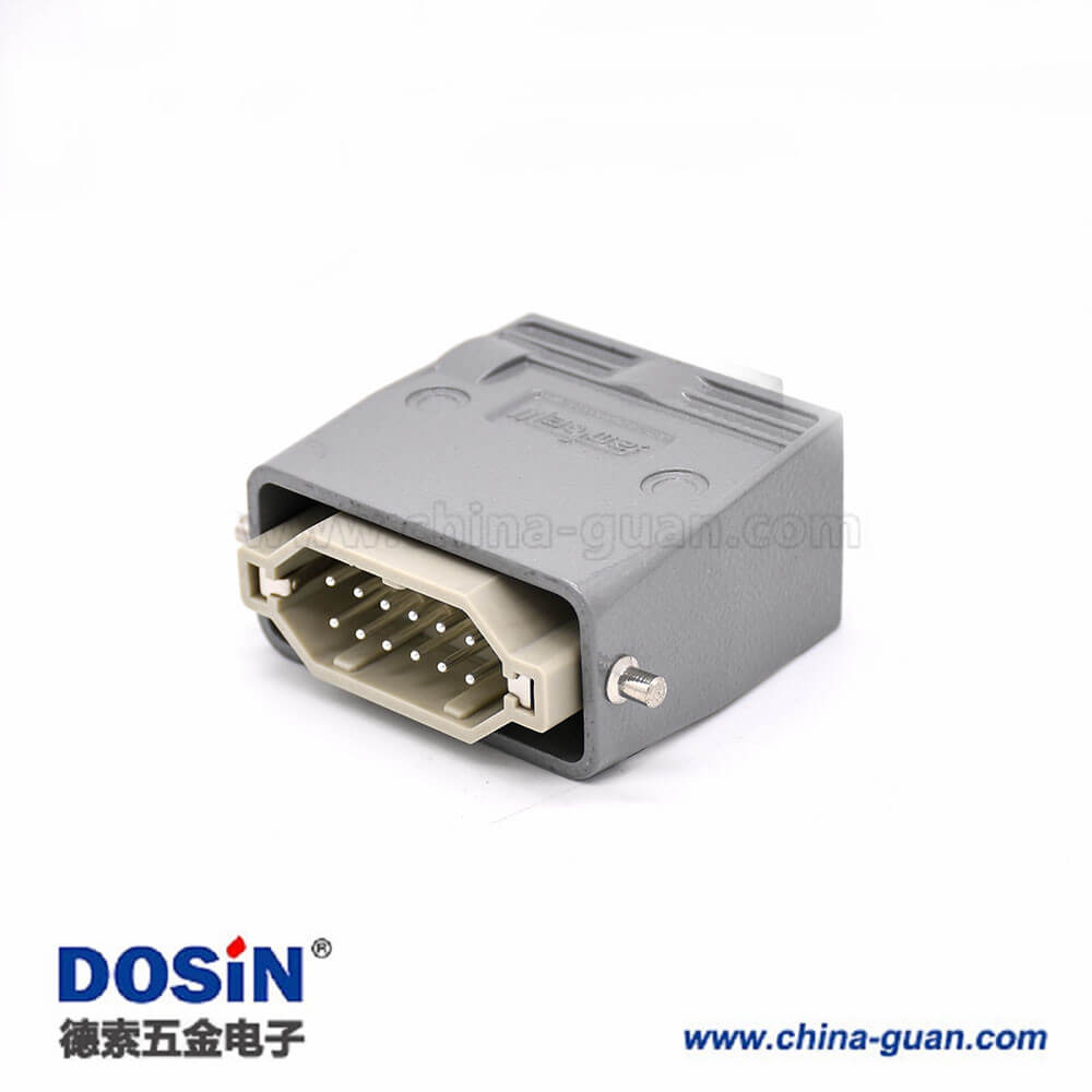 重載防水連接器H10A螺紋M25開(kāi)孔安裝公母對(duì)接斜出口12芯鍍銀PC料內(nèi)芯