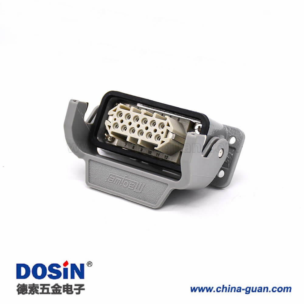標(biāo)簽:H10A,重載連接器,開(kāi)孔安裝,2耳,單扣,斜出口,塑料鐵扣,12芯,鍍銀,公母對(duì)接,M25