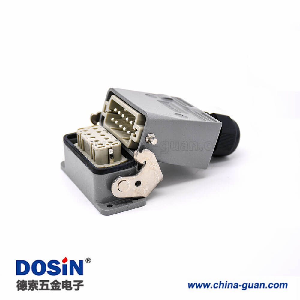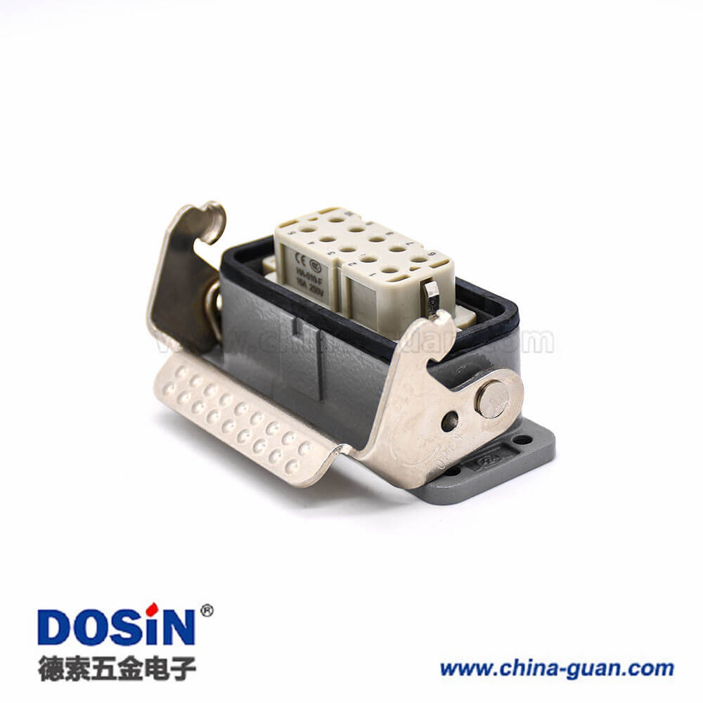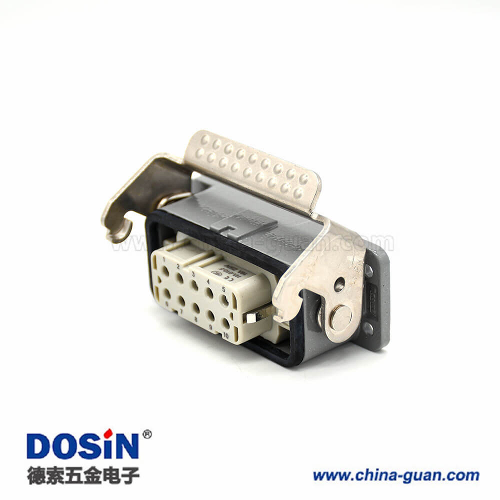 標(biāo)簽:H10A,重載連接器,開孔安裝,2耳,單扣,頂出口,鐵扣,10芯,鍍銀,公母對(duì)接,M25