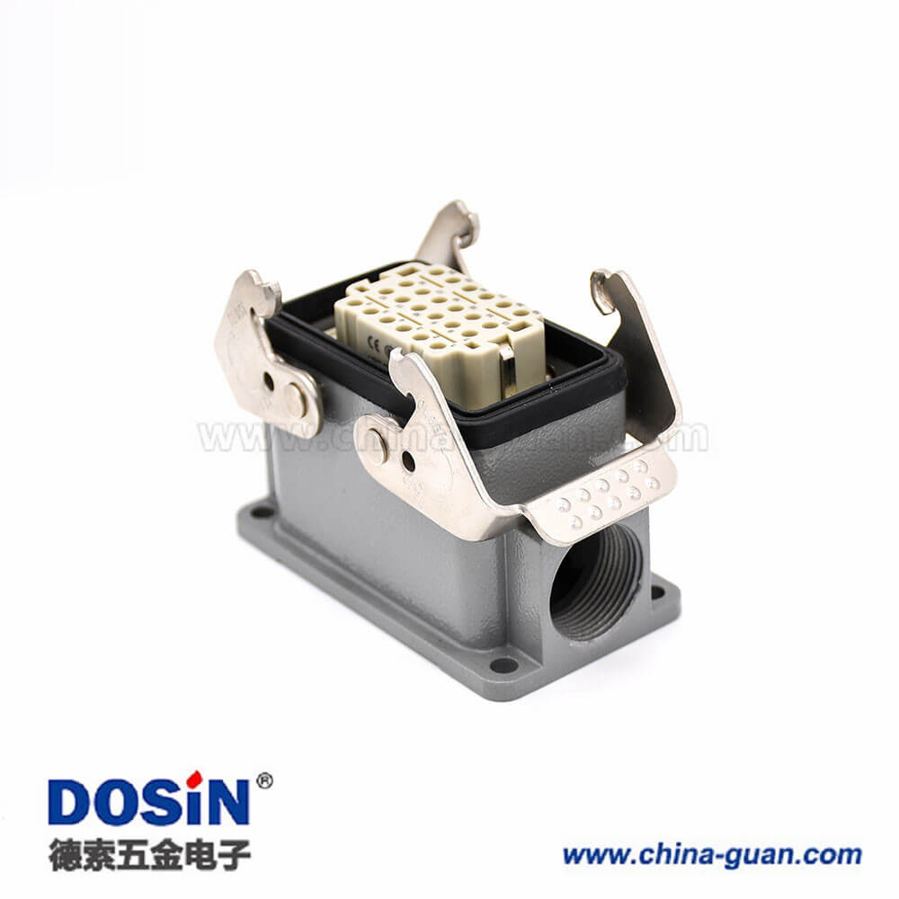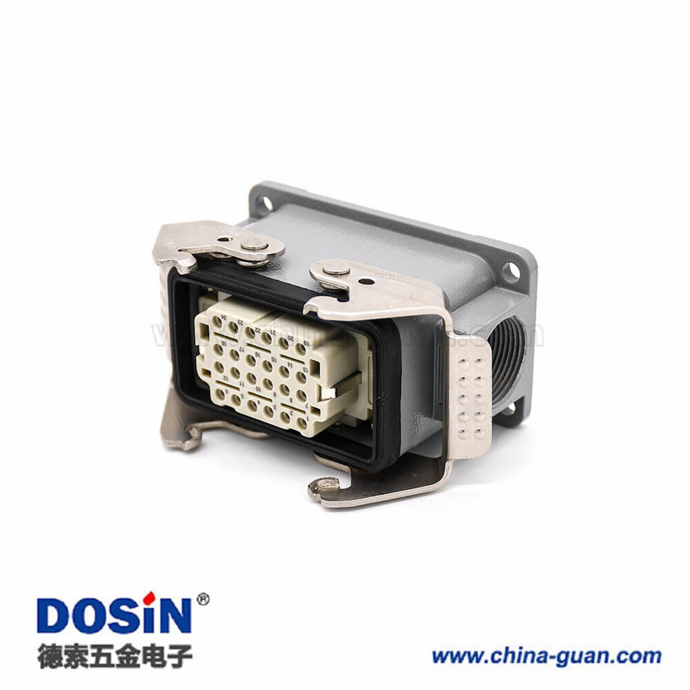 料號(hào):DOSIN-823-0020 標(biāo)簽:H10B重載連接器,表面安裝,斜出口,鐵扣,四耳,兩扣,公母對(duì)接,24芯,鍍銀,M32