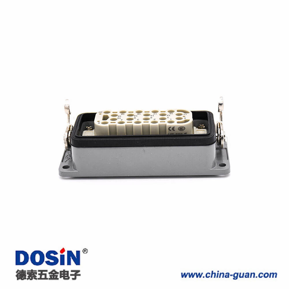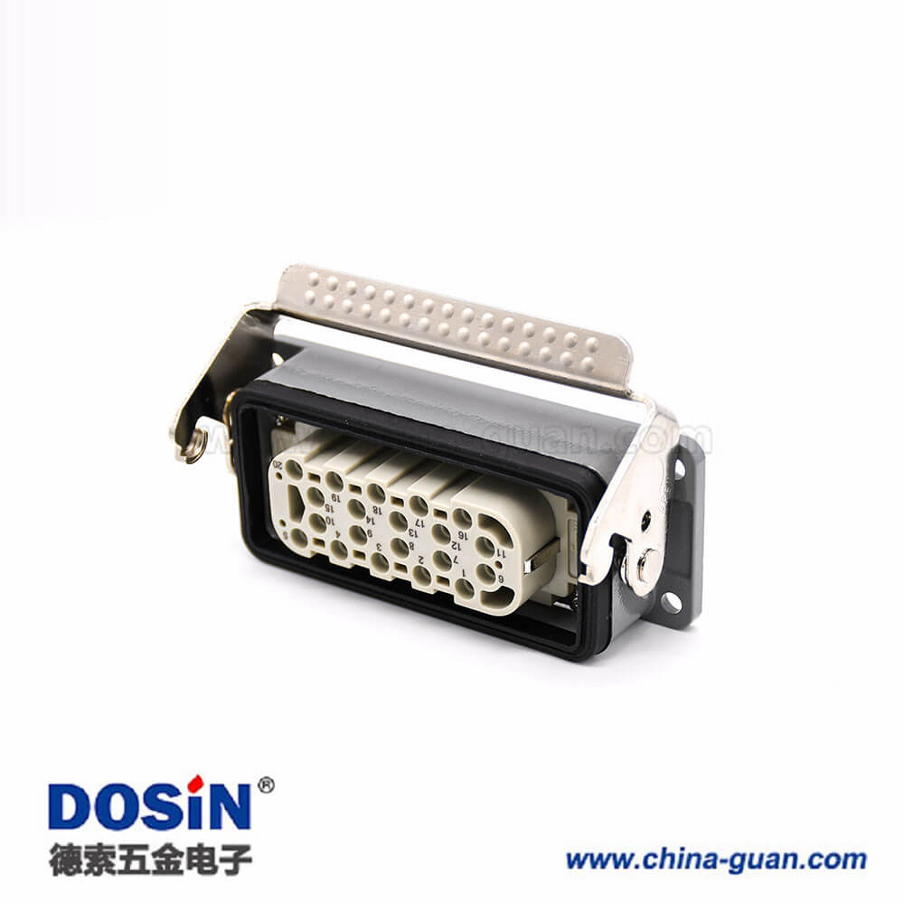 料號:DOSIN-823-0023 標(biāo)簽:H16B重載連接器,開孔安裝,斜出口,鐵扣,兩耳,單扣,公母對接,20芯,鍍銀,M32