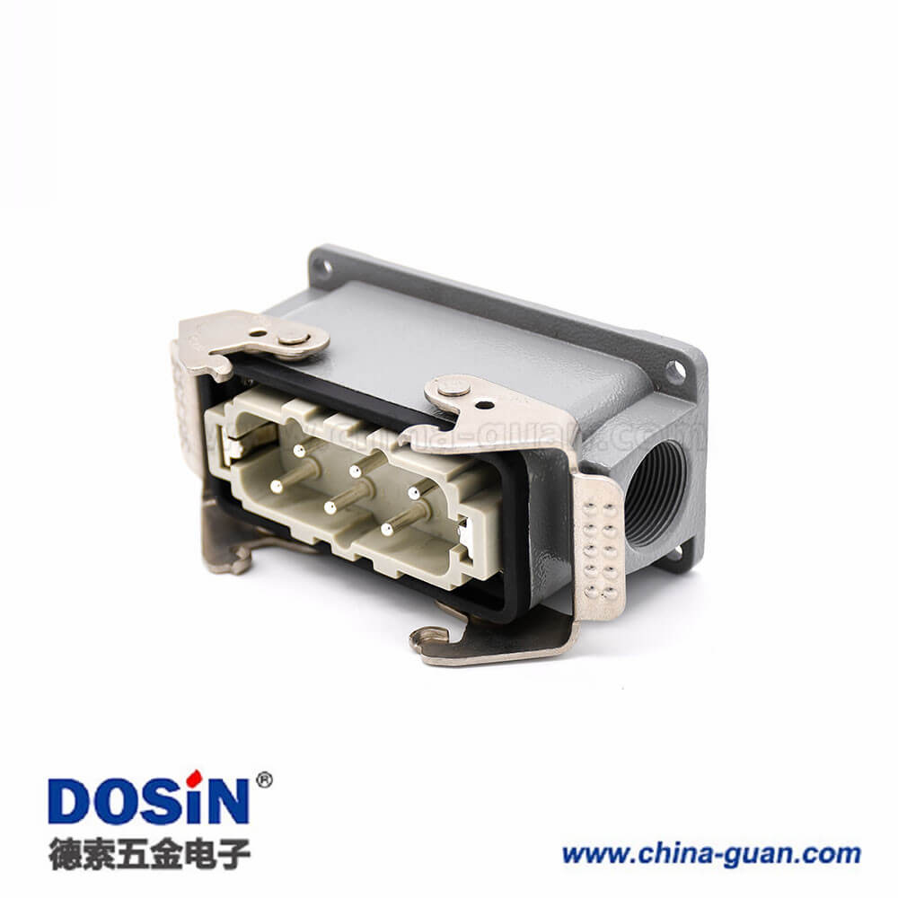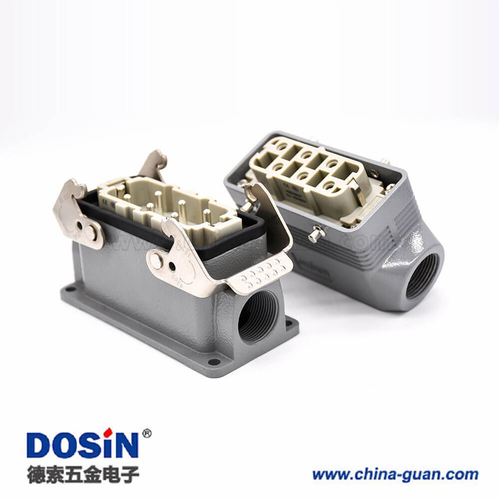 標(biāo)簽:H16B重載連接器,表面安裝,斜出口,鐵扣,四耳,雙扣,公母對接,6芯,鍍銀,M25