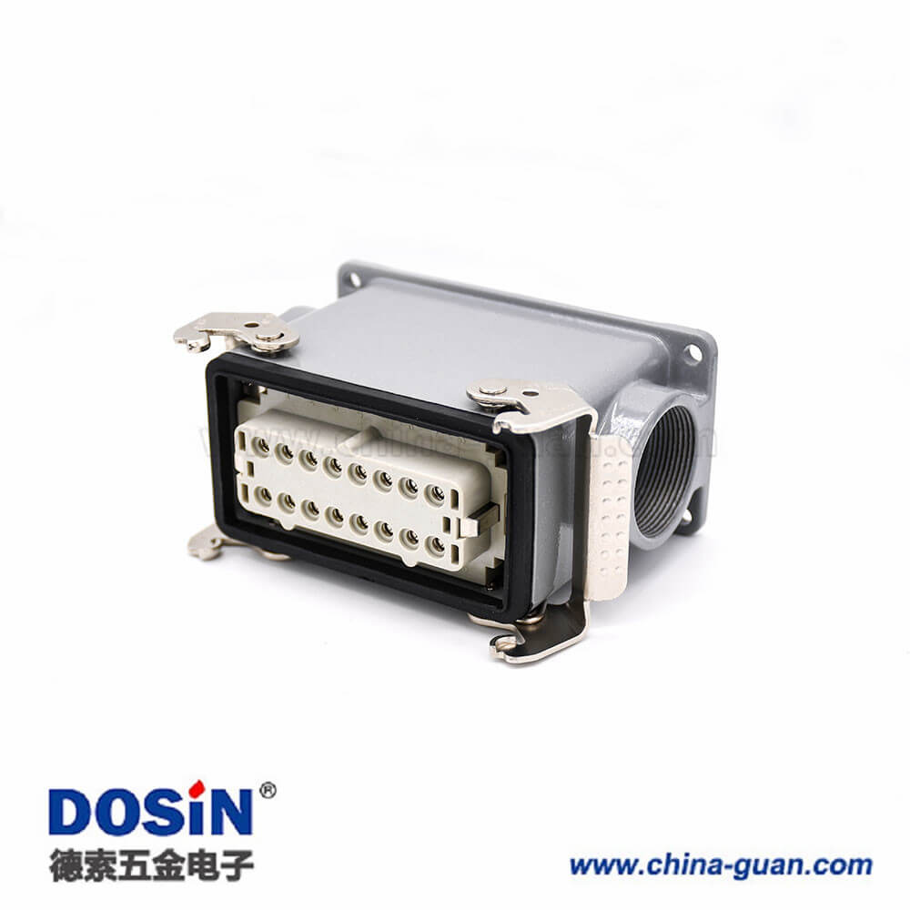 公母對(duì)接重載連接器16芯H16T外殼PG29高結(jié)構(gòu)頂出口加高型表面安裝鐵扣