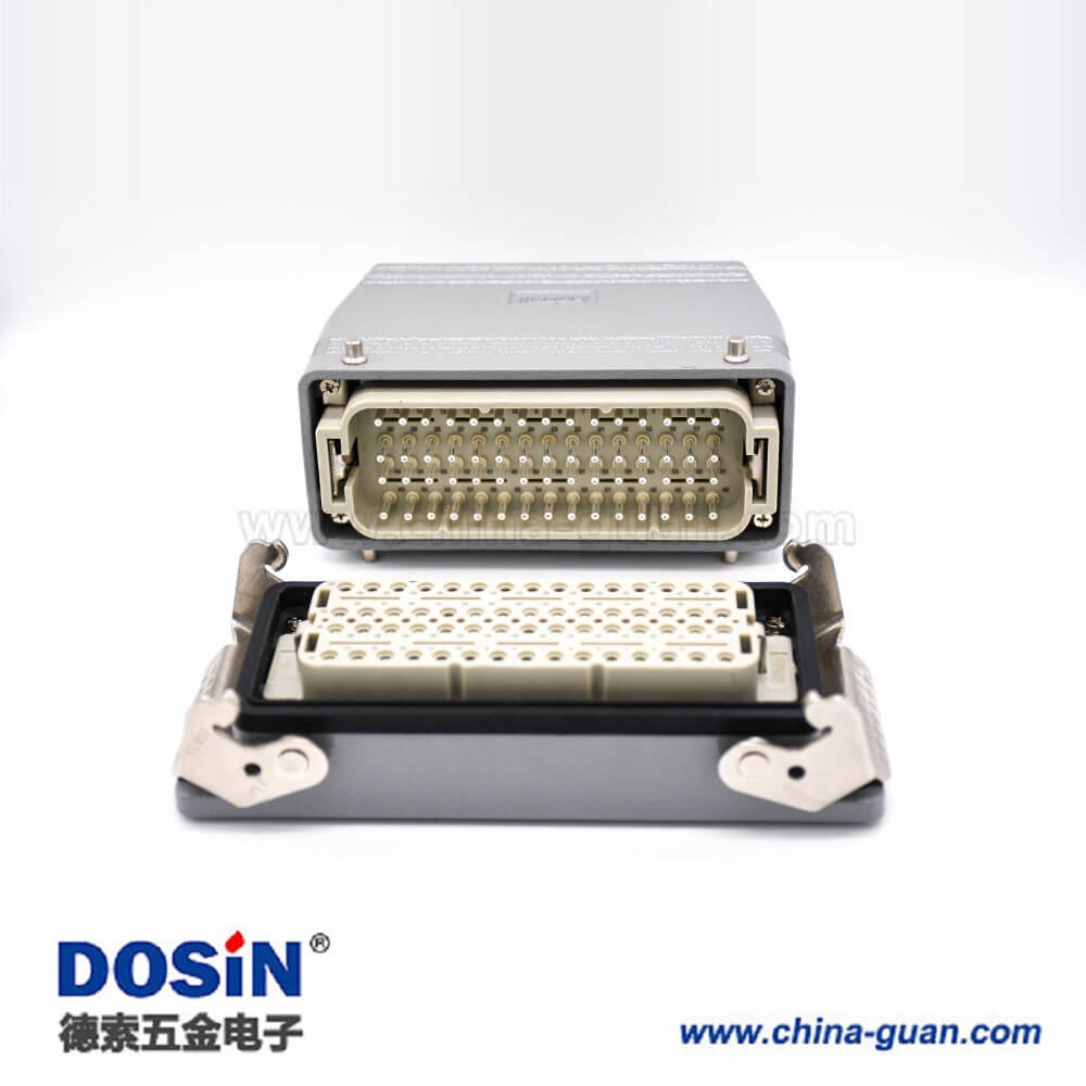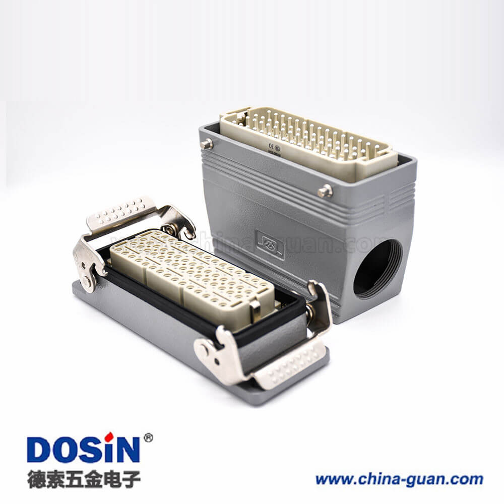 重載防水連接器60芯高結(jié)構(gòu)斜出口開孔安裝公母對(duì)接鐵扣H24T外殼M40