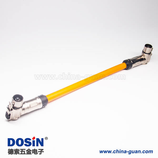 高壓插頭90°單芯金屬互鎖帶屏蔽直式轉(zhuǎn)接線25CM