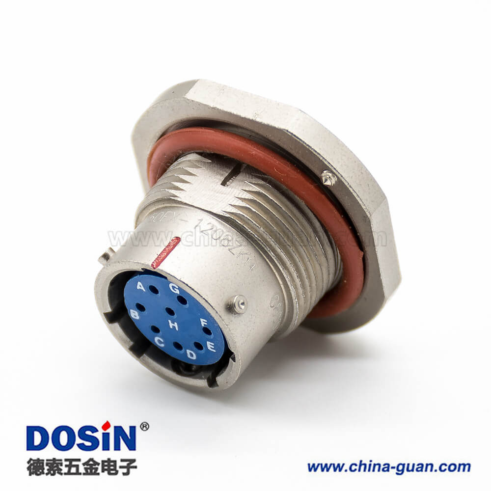 航空接頭連接器12殼體號(hào)8芯直式母插座前鎖穿墻焊杯鍍鎳卡口連接Y50EX防水連接器