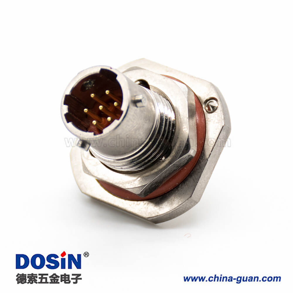 標簽:Y50X,插座,7芯,公頭,直式,卡口連接,PCB板安裝,前鎖穿墻,鋁合金,鍍鎳,防水