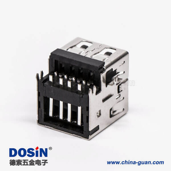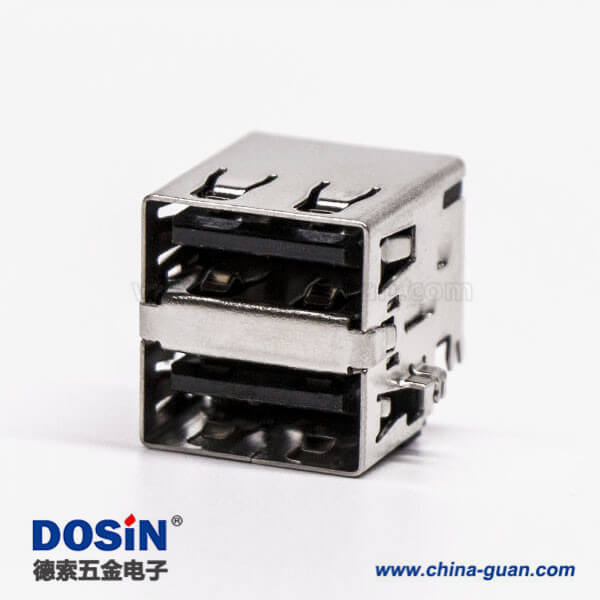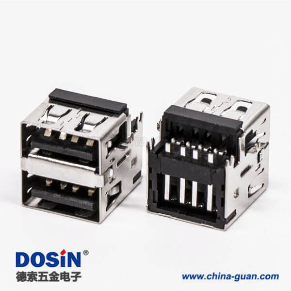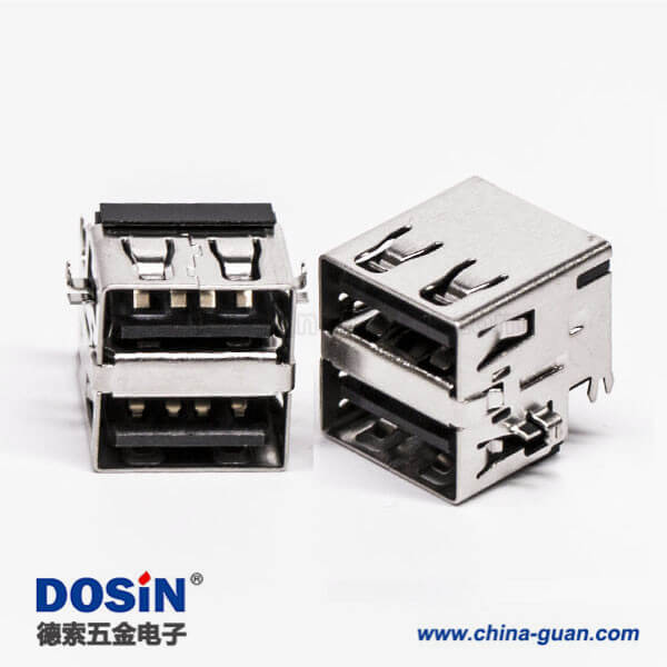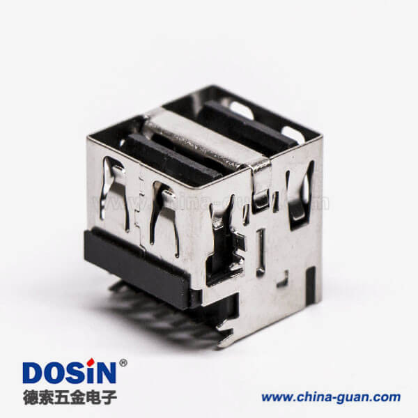 標(biāo)簽:USB2.0,母頭,Type A,彎式,雙端口,黑色膠芯,插孔,接PCB板