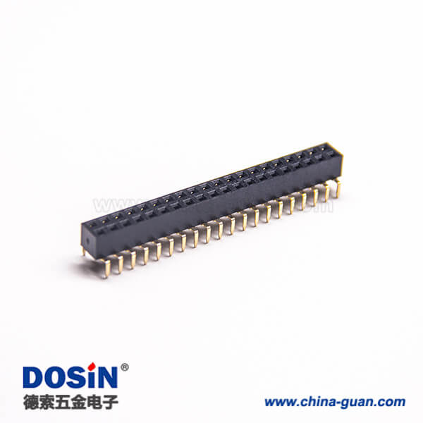 料號:DOSIN-863-0571 標簽:排母連接器,母頭,彎式,90度,40Pin,2.54mm,雙排,插板,焊接,鍍金,黑色,H5.0mm,方形