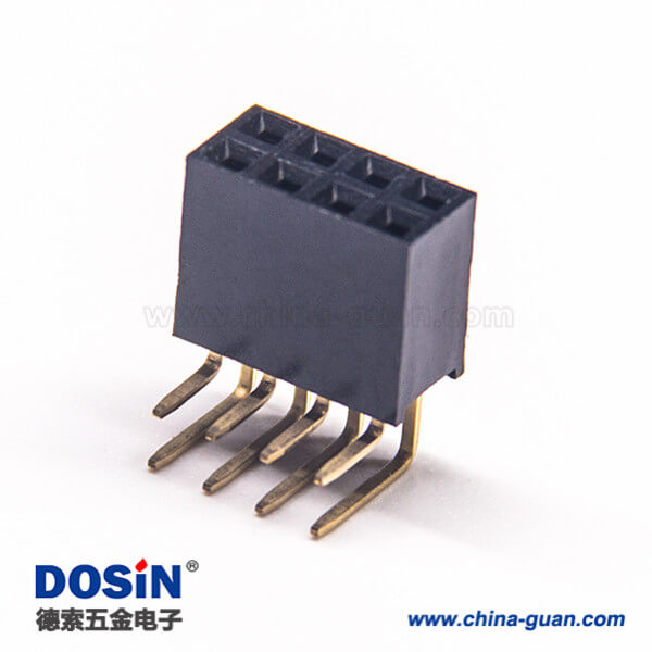 料號(hào):DOSIN-863-0573 標(biāo)簽:排母連接器,母頭,彎式,90度,8Pin,2.54mm,雙排,插板,Y型,焊接,鍍金,黑色,H8.5mm,方形