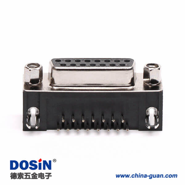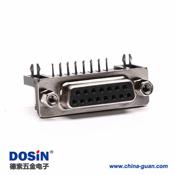 迷你 D Sub 15針彎式接PCB板鉚鎖焊板母座