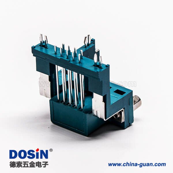 D-SUB連接器封裝公座9針彎式三腳架鉚鎖綠膠