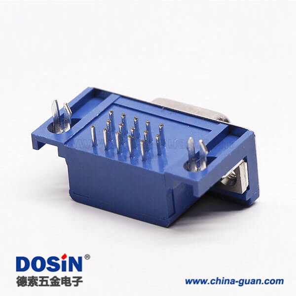 料號:DOSIN-868-0173 標簽:D-sub連接器,高密度,彎頭,公頭,15針,三排,鉚鎖不帶螺絲,穿孔,插pcb板,藍色膠芯