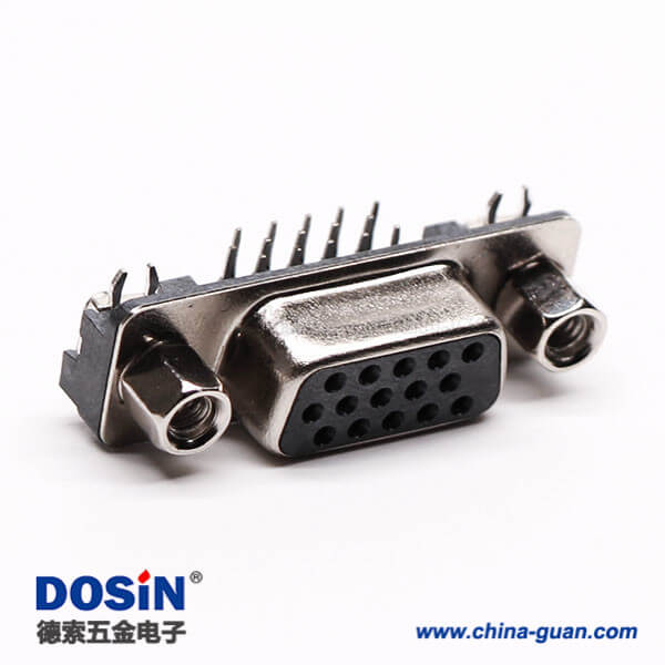 料號:DOSIN-868-0175 標(biāo)簽:D-sub連接器,高密度,直角彎頭,母頭,15針,鉚鎖,穿孔,插pcb板,黑色膠芯