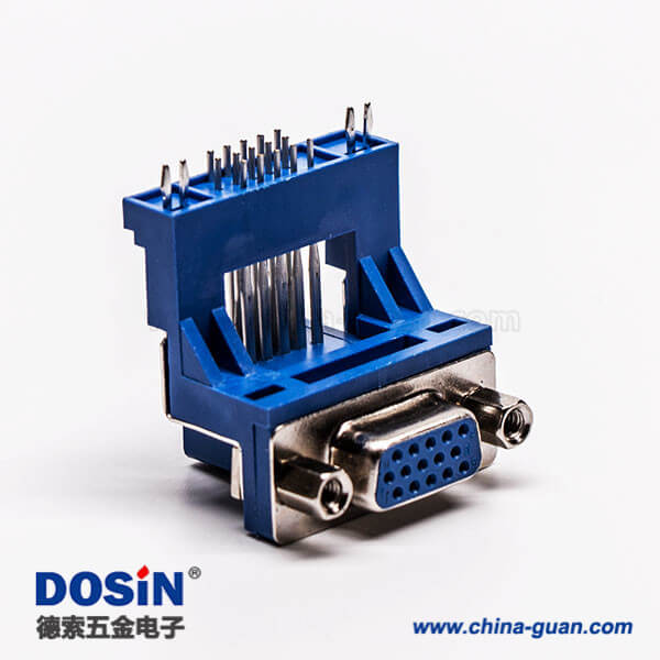 d sub連接器15針母頭彎式高架帶點(diǎn)雙加強(qiáng)筋鉚鎖藍(lán)色膠芯