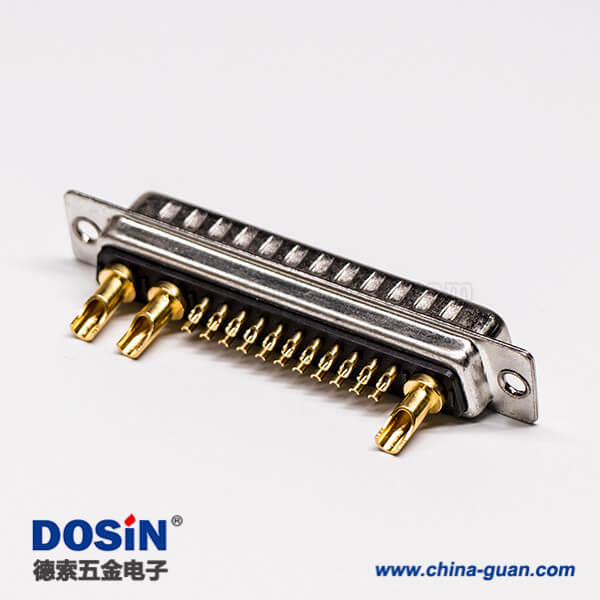 d sub大電流連接器25w3直式車(chē)針焊線式鍍金防火公座
