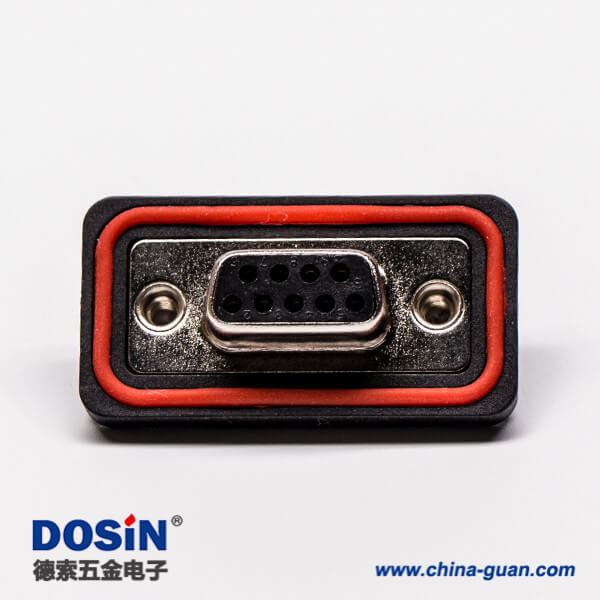 料號(hào):DOSIN-868-0255 標(biāo)簽:防水型D-sub,母頭,彎式,9 針,車針,接PCB板,插孔,IP67,黑色膠芯