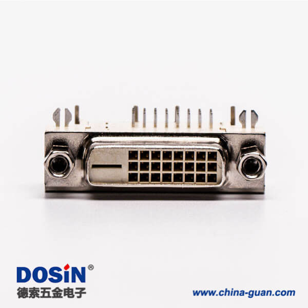 料號:DOSIN-868-0268 標(biāo)簽:DVI-D 連接器,母頭,彎式,24+1,白色膠芯,帶螺母,帶魚叉,穿孔,接PCB板