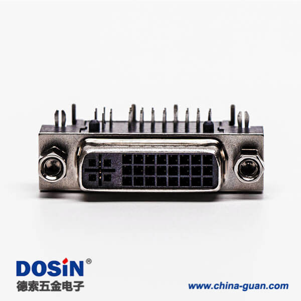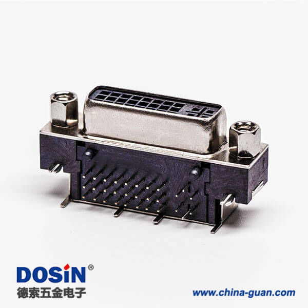 標(biāo)簽:DVI-D 連接器,母頭,彎式,24+1,黑色膠芯,帶魚叉,穿孔,接PCB板,帶螺母