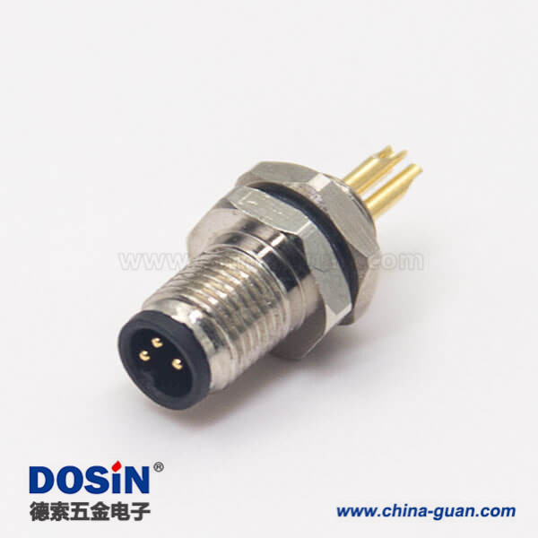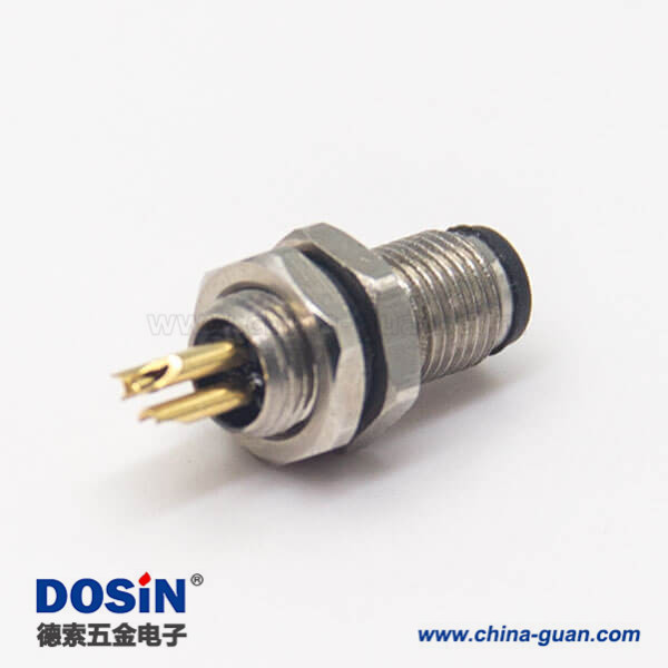料號:DOSIN-868-0502 標(biāo)簽:M5, 3芯, 板端插座, 公頭, 直式,焊接, 前鎖穿墻,接面板 / 線材