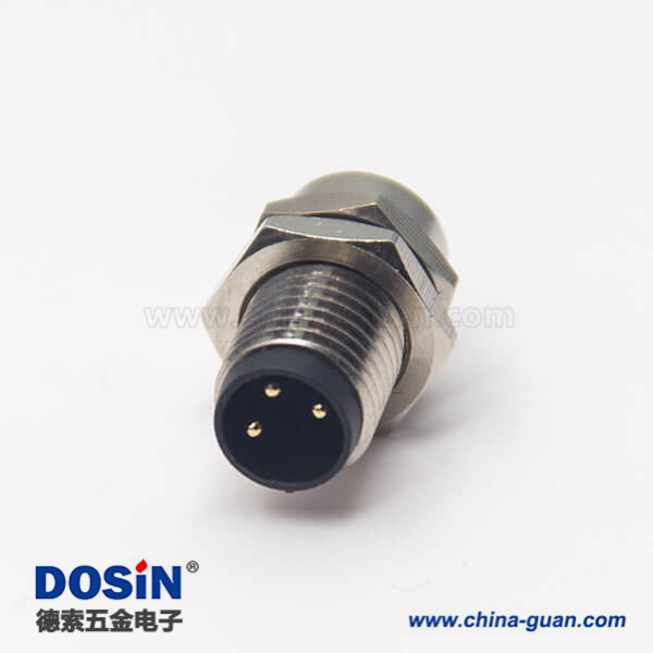 料號:DOSIN-868-0509 標(biāo)簽:M8,3芯,板端插座,公頭,直頭,面板安裝,前鎖板,焊線