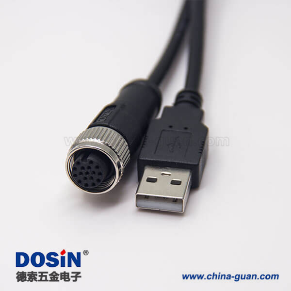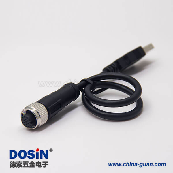 m12轉(zhuǎn)USB接線180度m12A型17芯轉(zhuǎn)USB Type A公頭