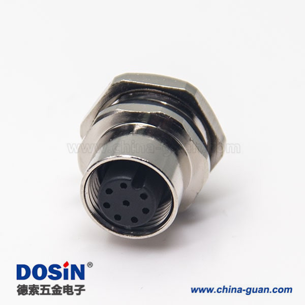 料號:DOSIN-868-0593 標簽:M12板端插座,A編碼,8芯,直式,母頭,焊線,后鎖板,面板安裝