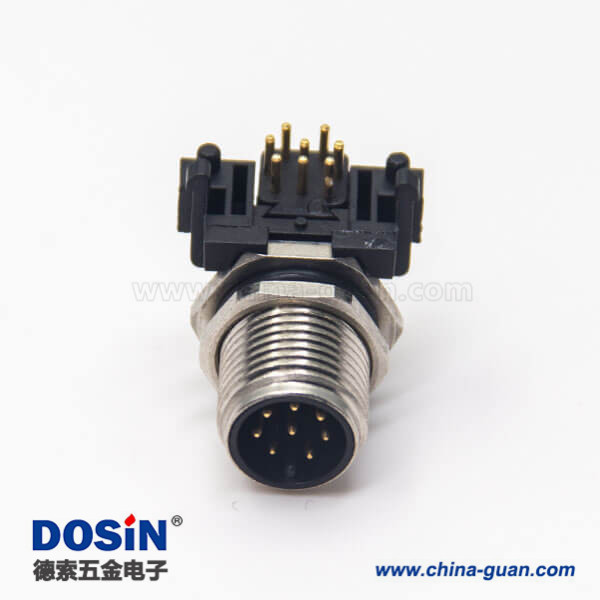 料號:DOSIN-868-0597 標簽:M12板端插座,A編碼,8芯,彎式,公頭,插板,前鎖板,面板安裝