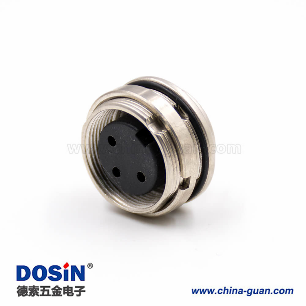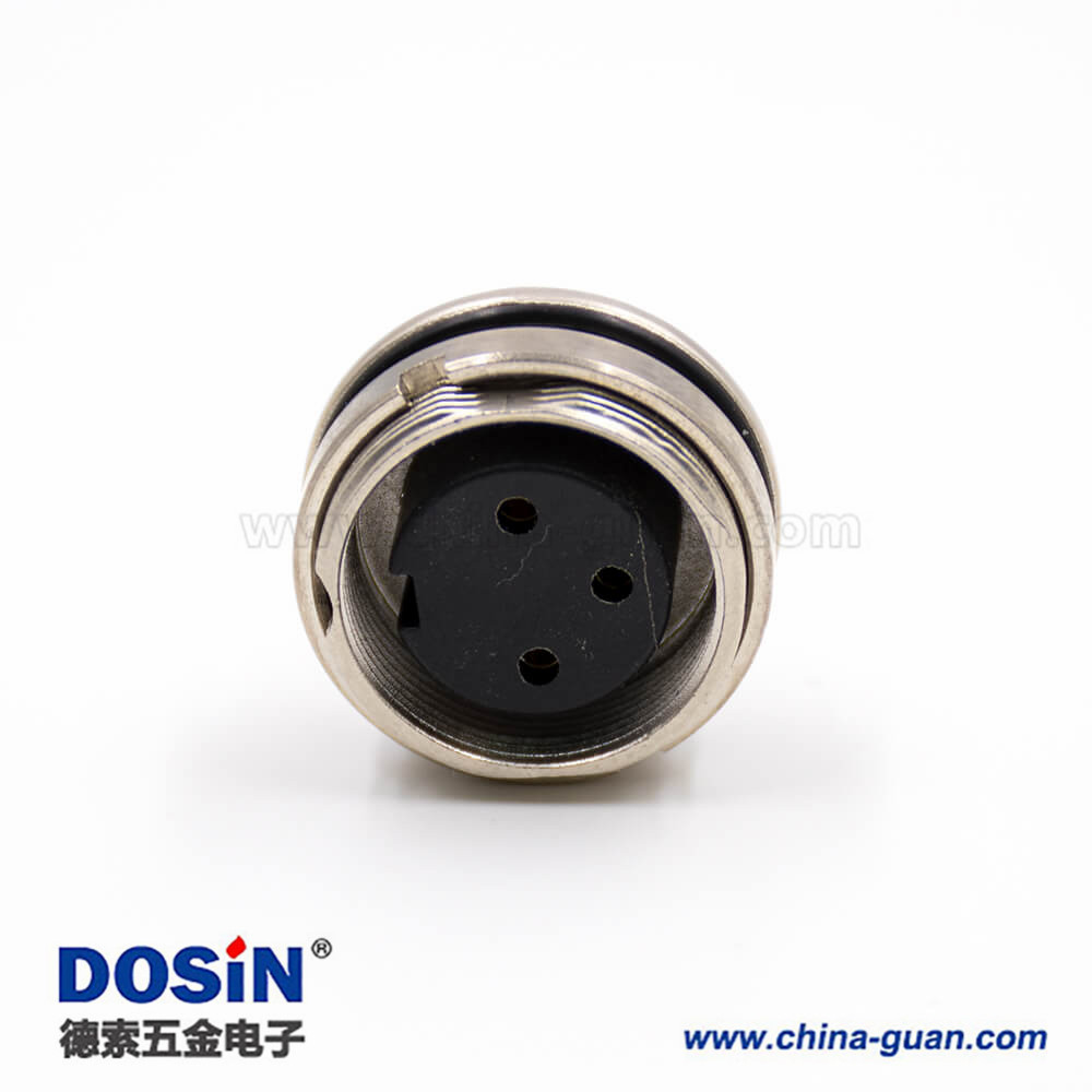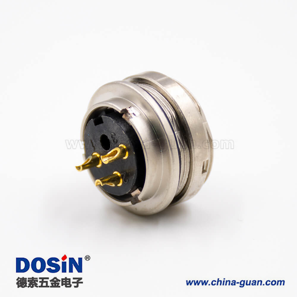 3芯插座M16母頭A扣直式焊杯接線前鎖穿墻板端插座連接器